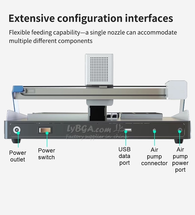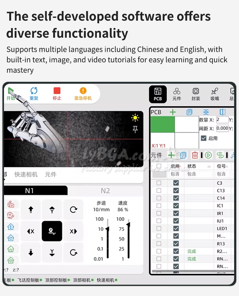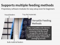 Fully compatible with manual/tube/tray feeding, with bulk component vision recognition rate ≥99.9%, and supports 18 types of irregular component packaging formats