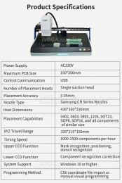 2 Vision Camera System High Speed Desktop Automatic SMT Pick and Place Machine Chip Mounter SMD Single Head Nozzle for PCB Works