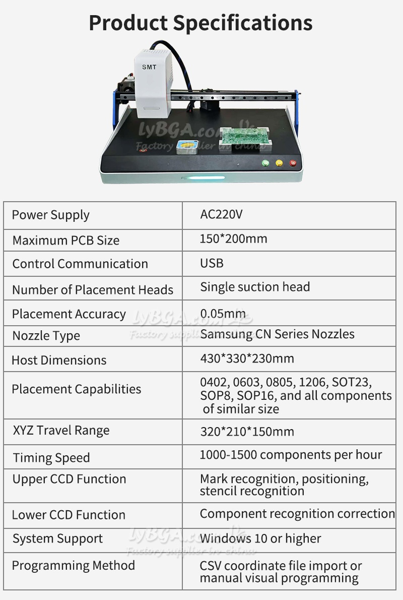 LY-Mini S1 Double Vision Camera System High Speed Desktop Mini Automatic SMT Pick And Place Machine Chip Mounter LED SMD Single Head Nozzle For PCB Assembly Line Sample Works