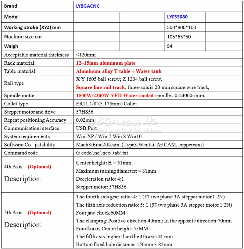 LYBGACNC LYFS5080 Working Stroke 500x800mm 3/4/5axis