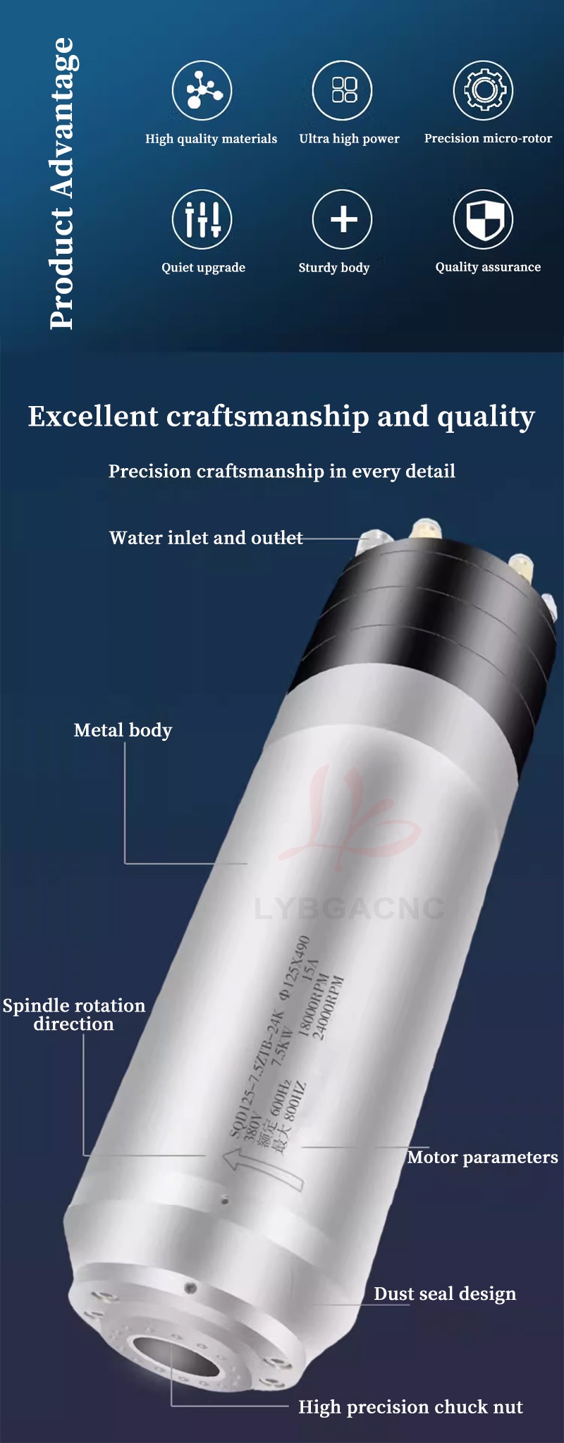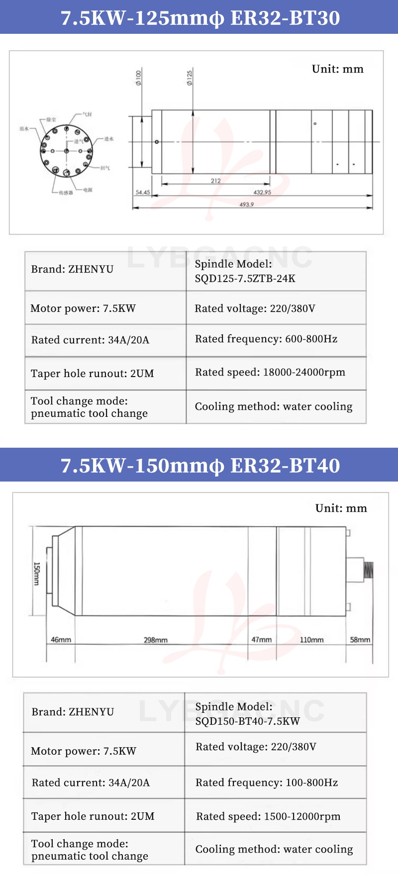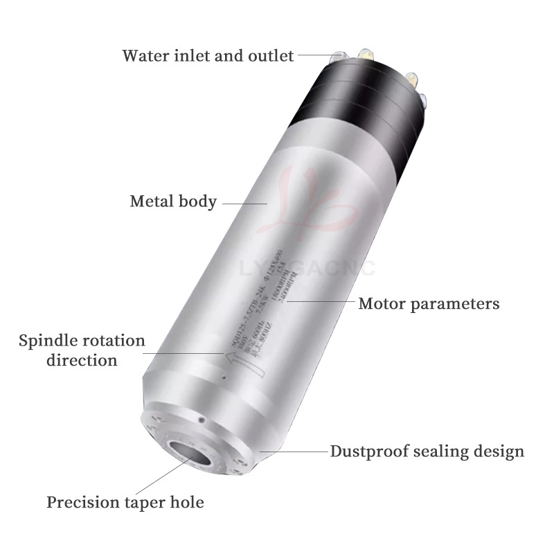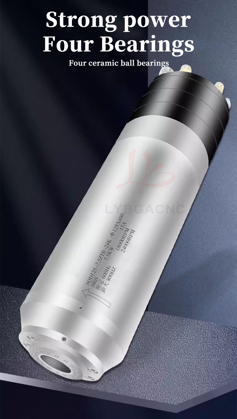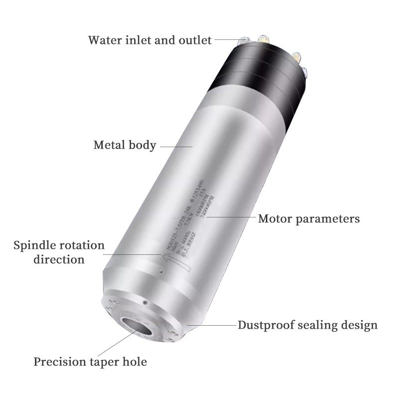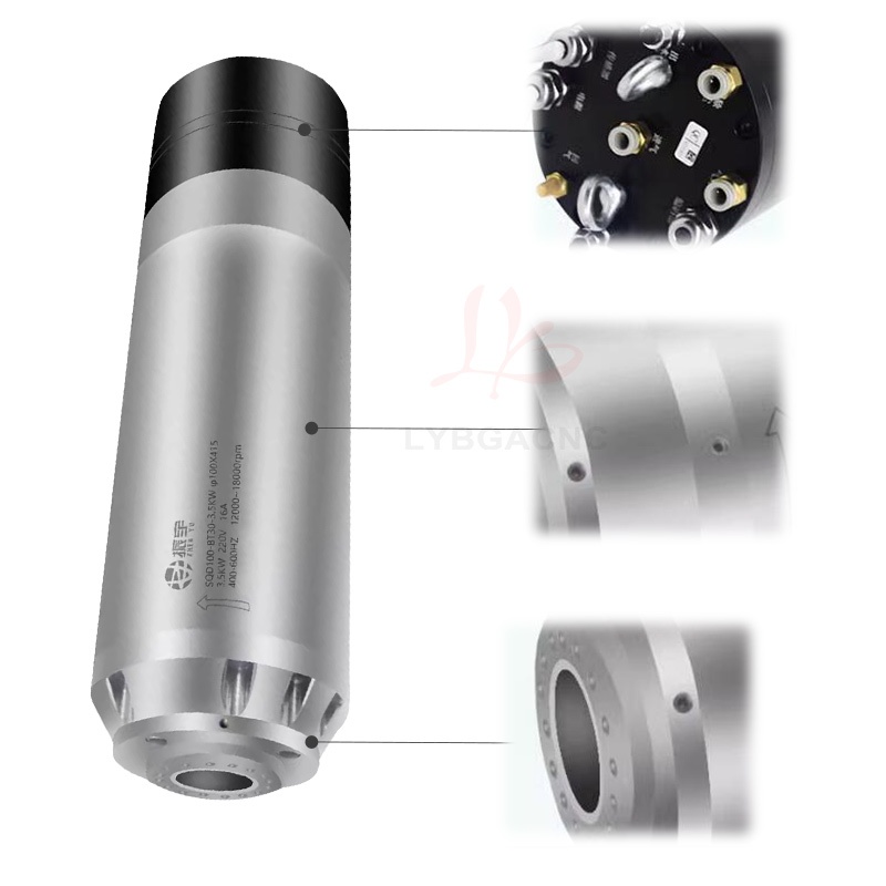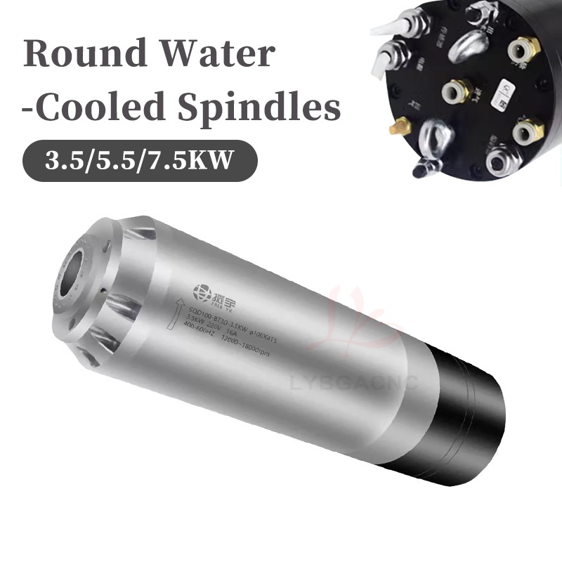 3.5/5.5/7.5KW Round shape water-cooled spindle motor Spindle motor Automatic tool changer spindle motor Engraving machine parts Dustproof design Four ceramic ball bearings with BT30/BT40 shanks ER20 ER25 ER32 220V