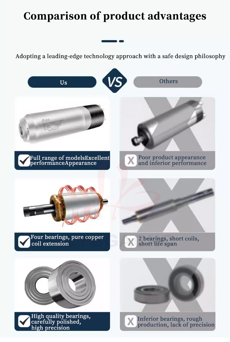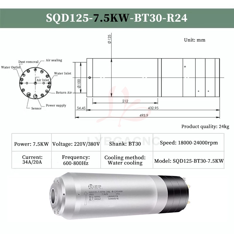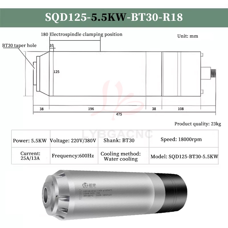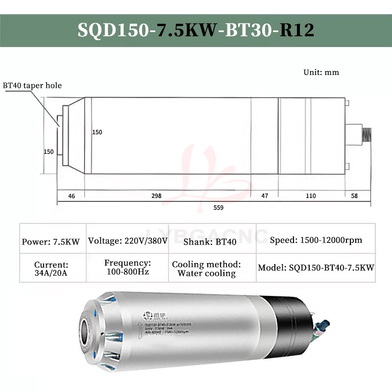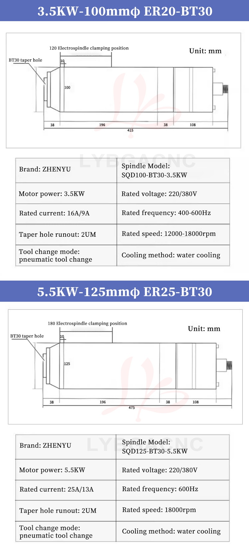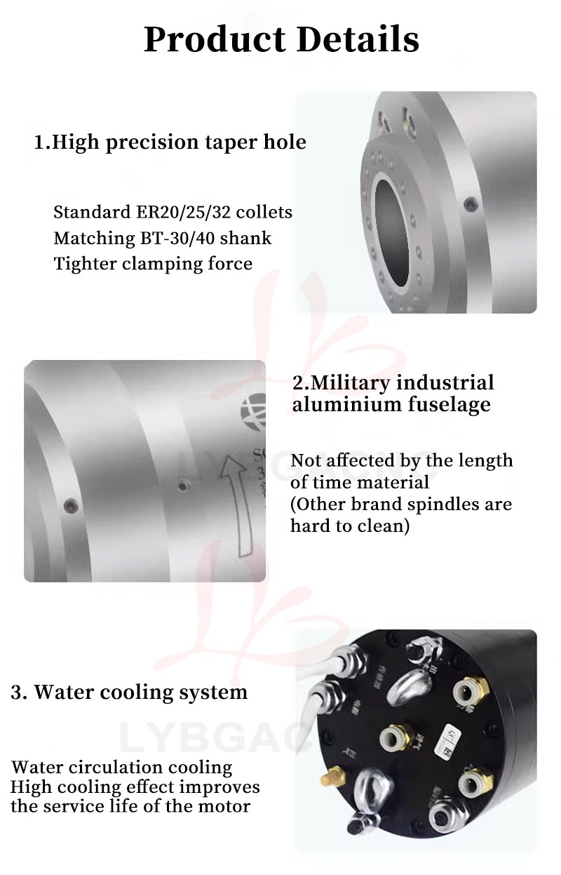 3.5/5.5/7.5KW Round shape water-cooled spindle motor Spindle motor Automatic tool changer spindle motor Engraving machine parts Dustproof design Four ceramic ball bearings with BT30/BT40 shanks ER20 ER25 ER32 220V