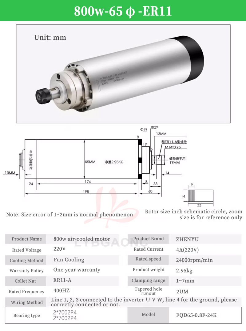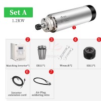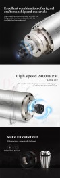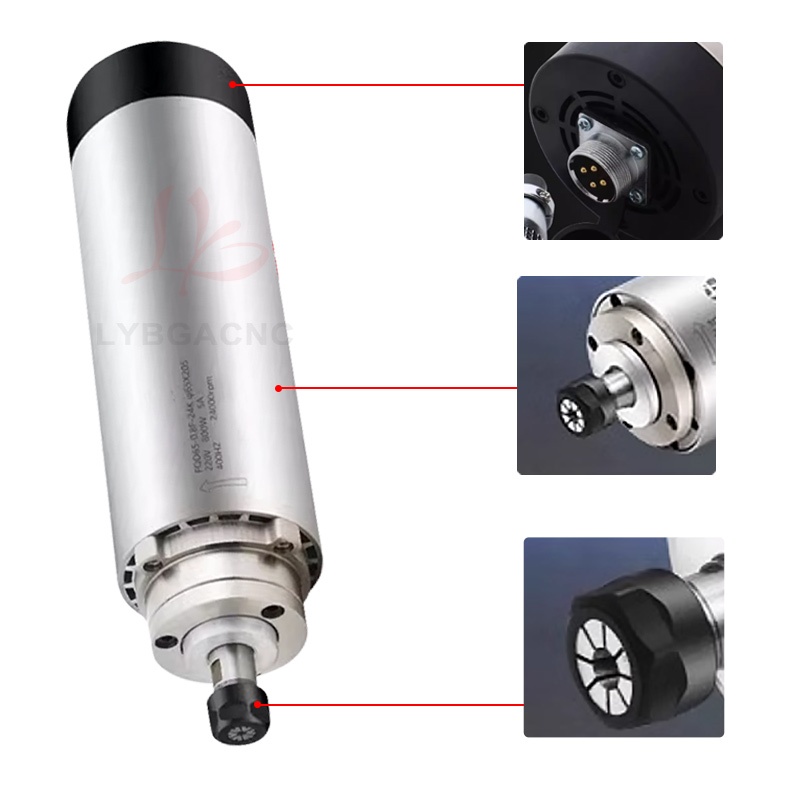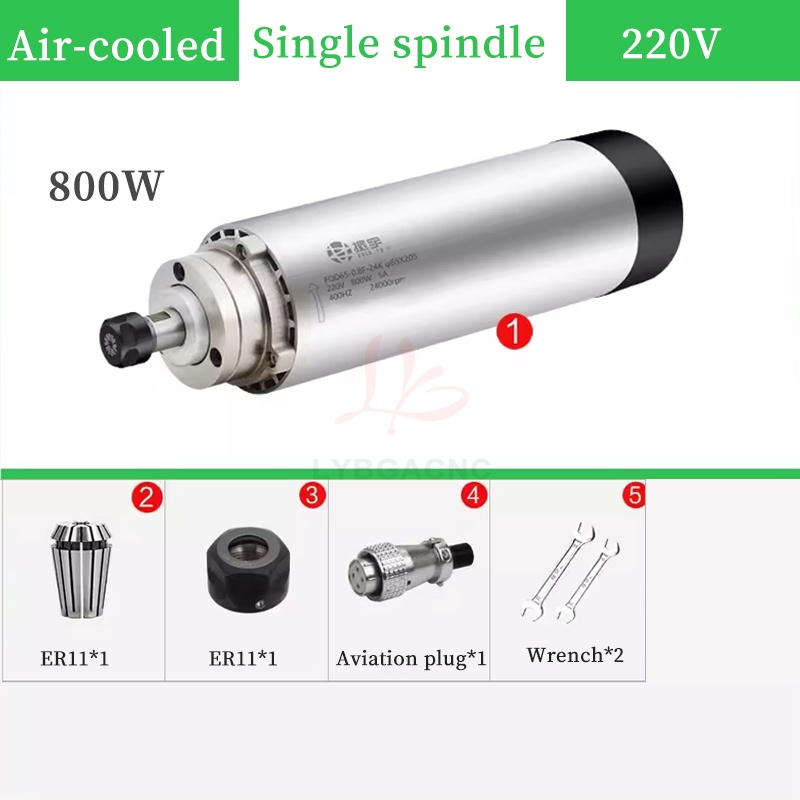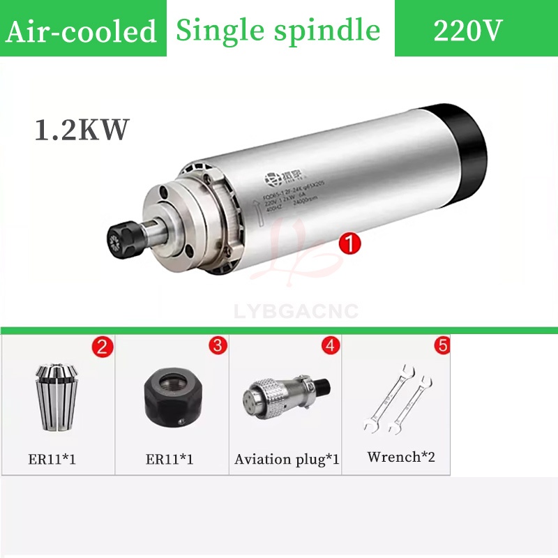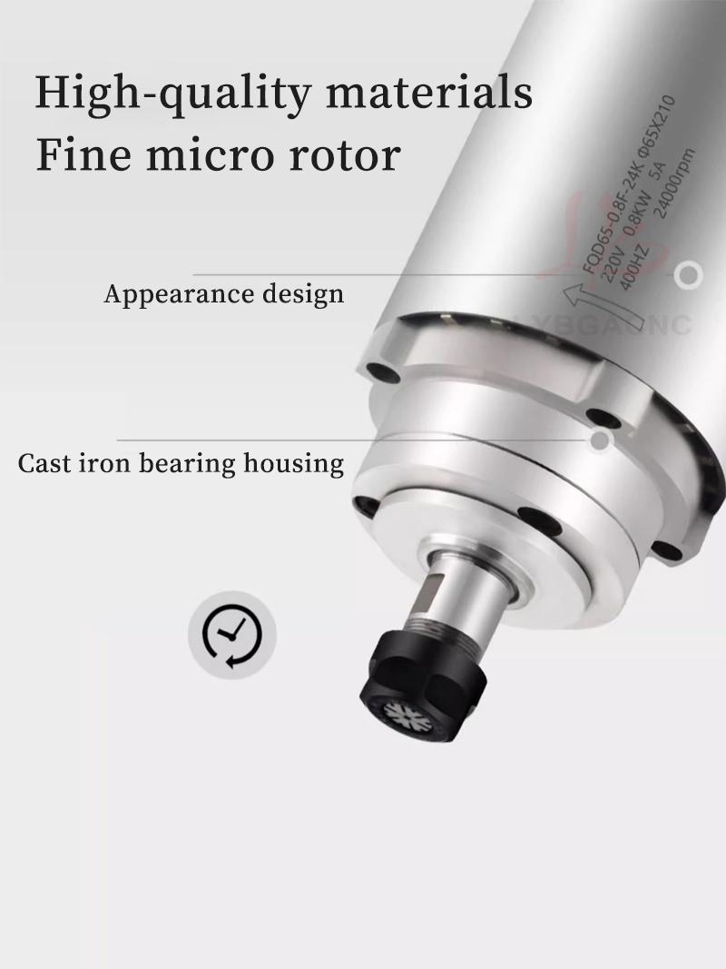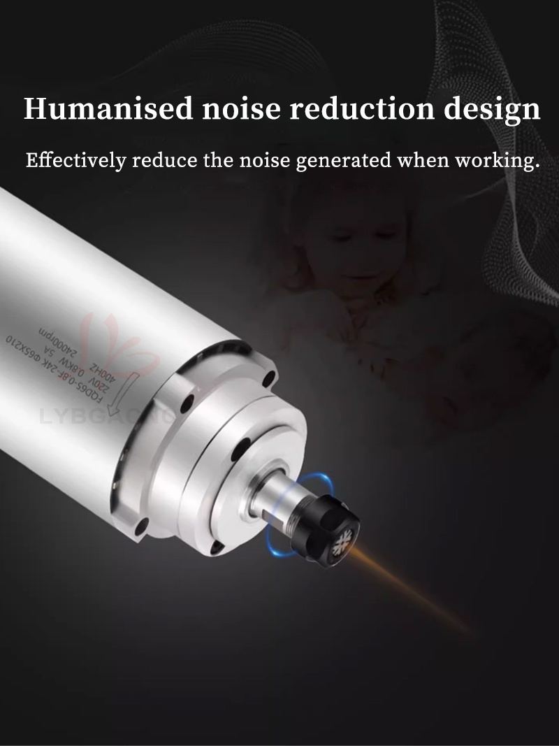 800W/1.2KW High-speed air-cooled spindle motor Air-cooled electric spindle Round air-cooled electric spindle Air-cooled engraving machine parts Four bearings Series 7 P4 high-speed motor 65mm ER11 220V