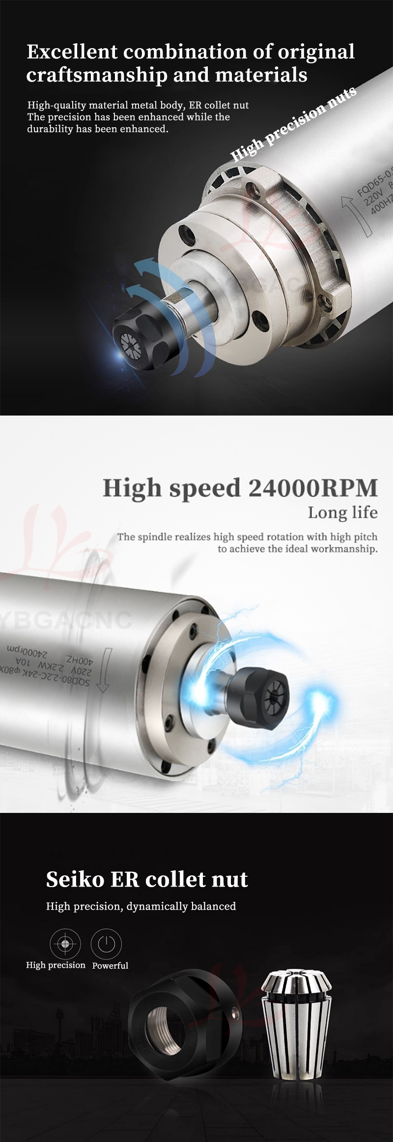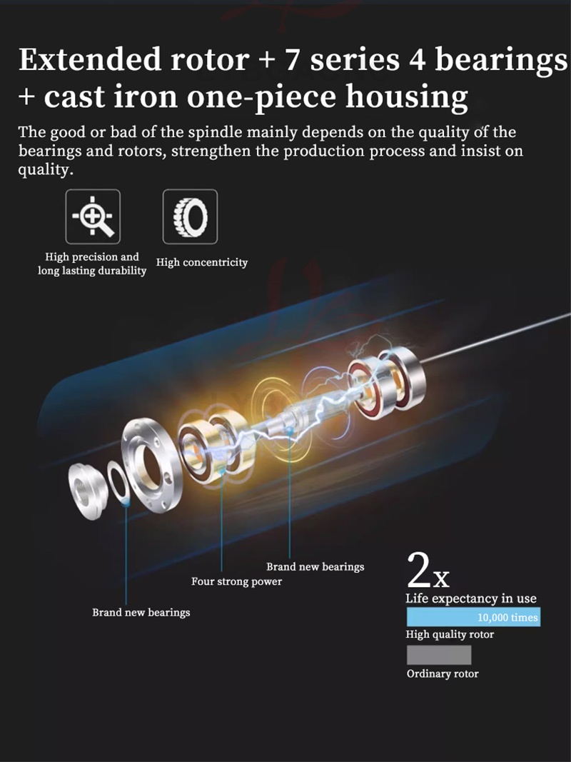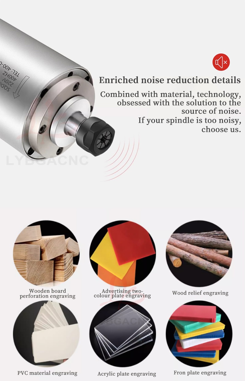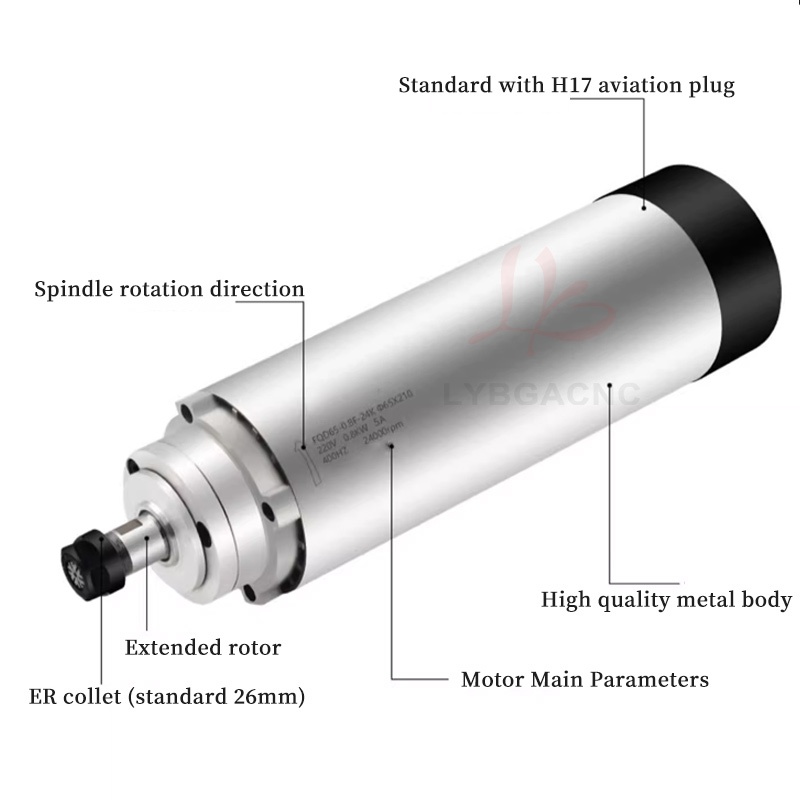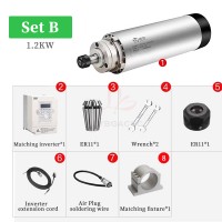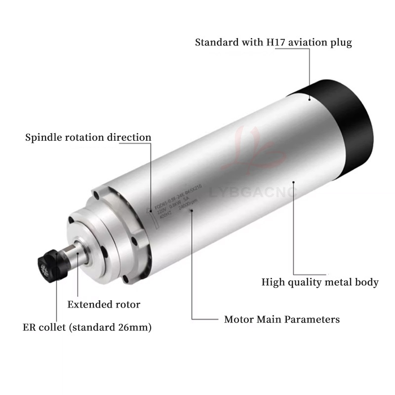 800W/1.2KW High-speed air-cooled spindle motor Air-cooled electric spindle Round air-cooled electric spindle Air-cooled engraving machine parts Four bearings Series 7 P4 high-speed motor 65mm ER11 220V