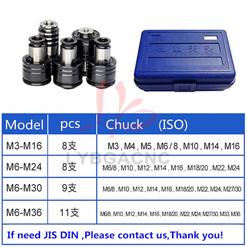 Chuck type: M6/8 M10 M12 M14 M16 M18/20 M22 M24