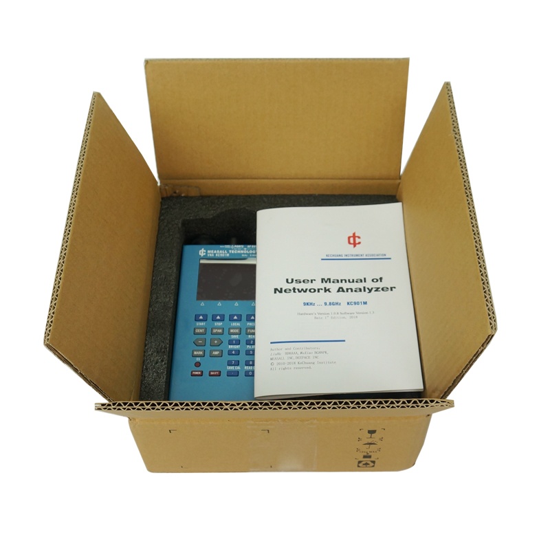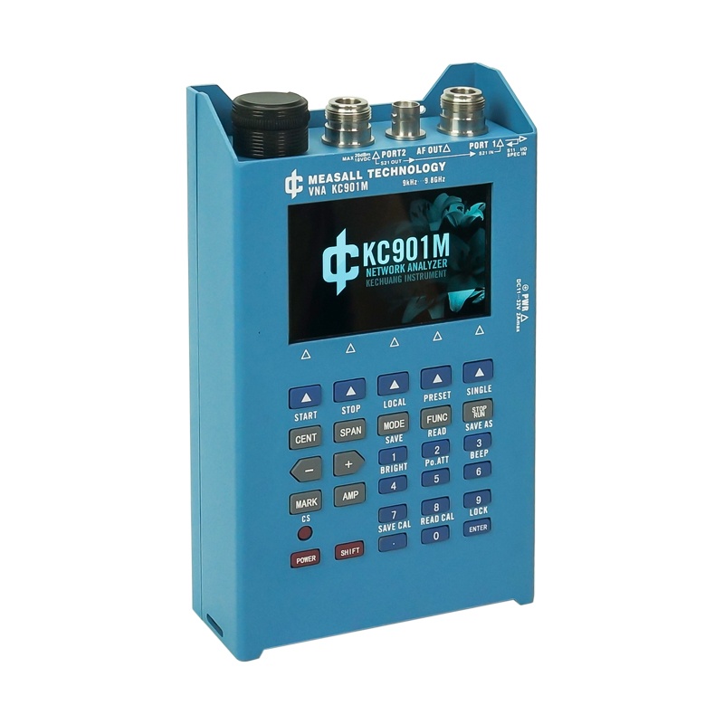 KC901M is a multipurpose RF instrument integrating a VNA (vector network analyzer), spectrum analyzer, field strength meter, and an extra low-frequency signal source. It can do complete single port vector measurement and 2-ports simple vector network analyzing.