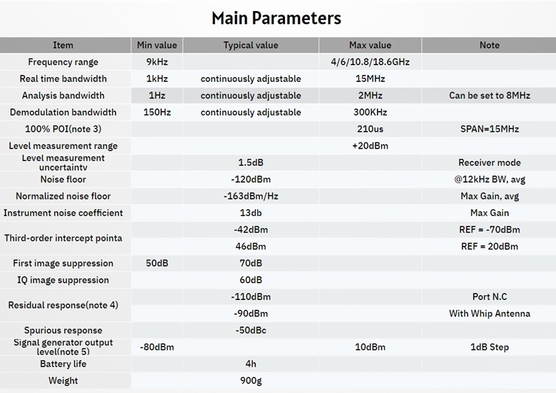 The basis of the KC908 is a real-time spectrometer, which provides a real-time bandwidth of 15MHz when working independently and allows panoramic scanning over the entire coverage area. For narrowband digital signals, the raw data (IQ data) can be recorded to a TF card. If further analysis is desired, USB 3.0 can be used to connect to a computer with a real-time bandwidth of 40 MHz when using the GNURadio software.